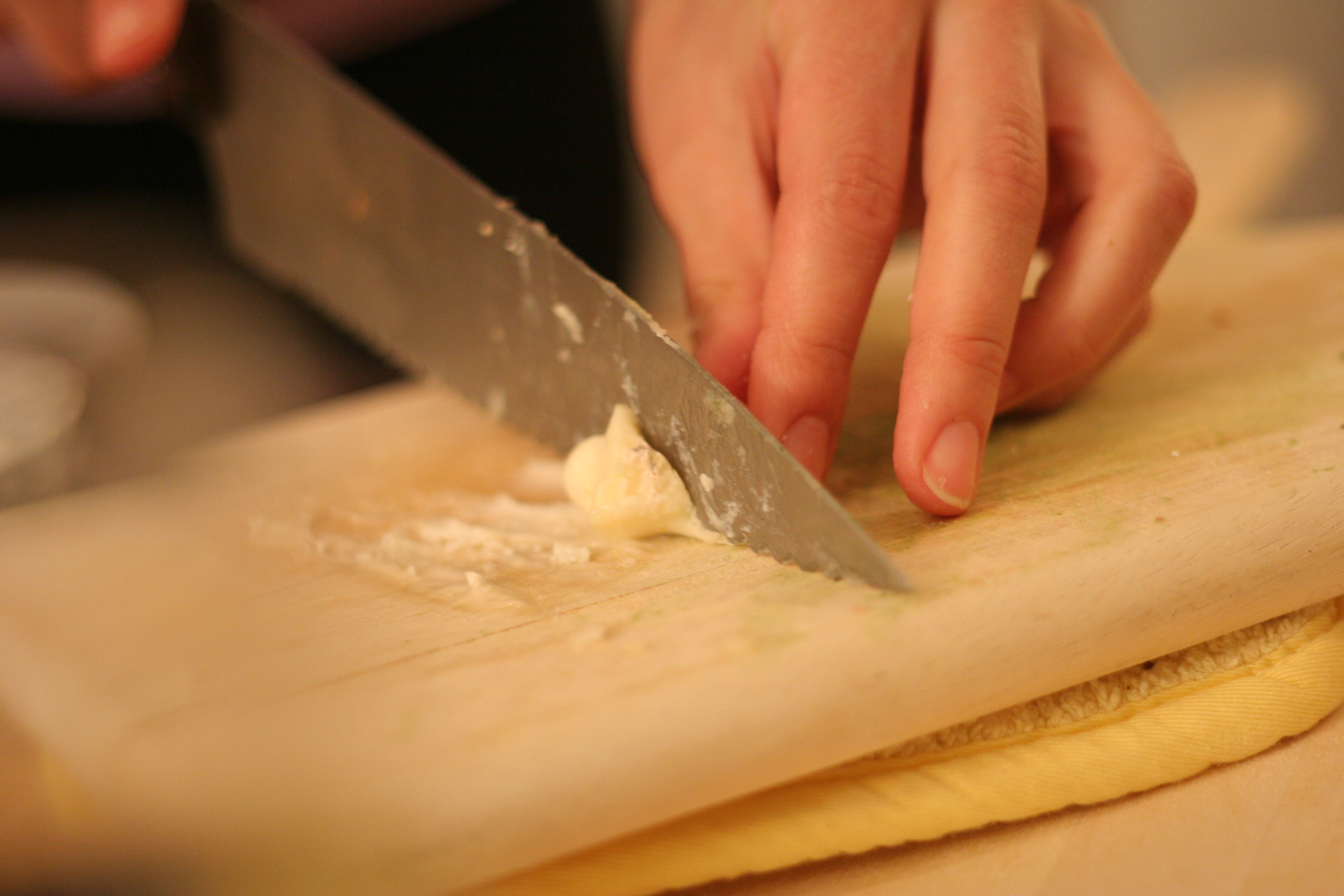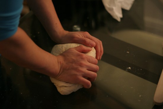Begin by mixing the yeast, sugar and cup of water (lightly stirring with a fork until dissolved) and let sit for about 10 minutes (if the yeast does not become bubbly and foamy discard as your yeast is probably outdated and inactive). While yeast festers, mix the flour and salt together in a large bowl. Add dissolved yeast and olive oil to the flour mixture and mix with a wooden spoon until lightly packed together. Empty the contents (Even if some dough is still loose) onto a counter space for – that’s right – KNEADING. Work the dough for about 8-10 minutes and it should form a smooth ball (for kneading techniques I would consult You Tube or watch someone do it correctly if you have the privilege). After the ball has been smoothed, add just enough olive oil to cover a large round bowl. Place the dough into the bowl (make sure you brush the top of the dough ball with olive oil as well so it does not get crusty on the top) and cover with saran wrap. If all goes well, the dough should rise nicely in about 60-90 minutes or until the dough is about double the original size…